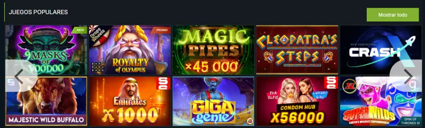 - 🎲 Tragamonedas: Con miles de títulos, las tragamonedas son una de las principales atracciones. Desde slots clásicas hasta las más modernas con gráficos 3D, hay algo para cada tipo de jugador.
